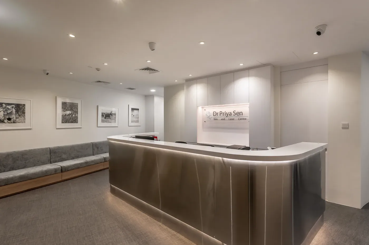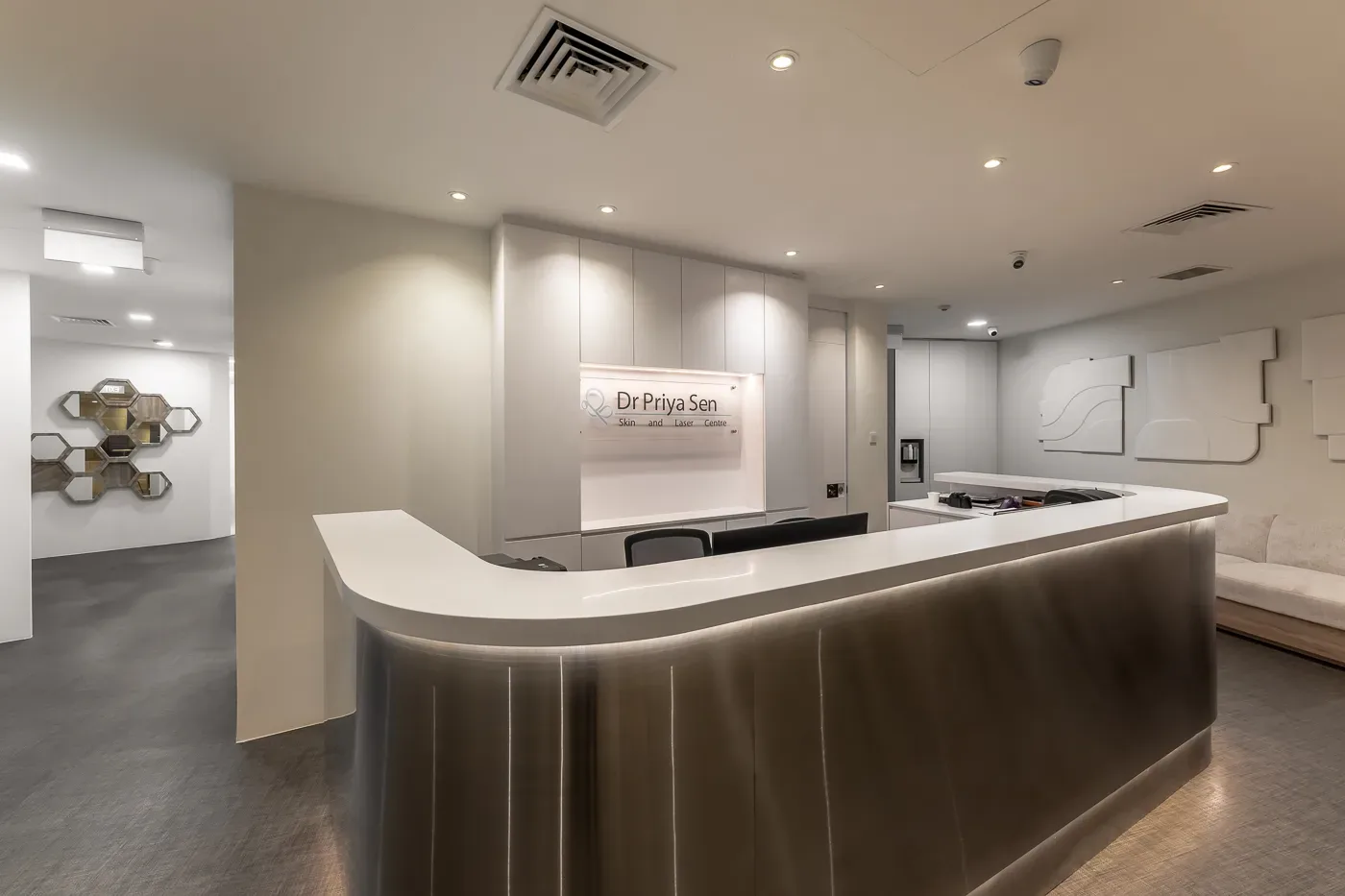 Unique features | One of the unique features of this clinic is the use of a curved wall in the reception area. This creates a more dynamic and interesting space, and it also helps to draw patients' eyes to the reception desk. Another unique feature is the use of a glass partition between the reception area and the treatment rooms. This allows patients to see into the treatment rooms, which helps to create a sense of trust and transparency.