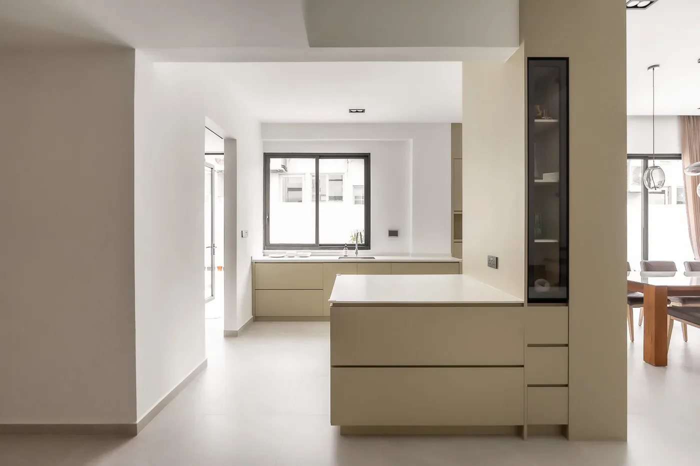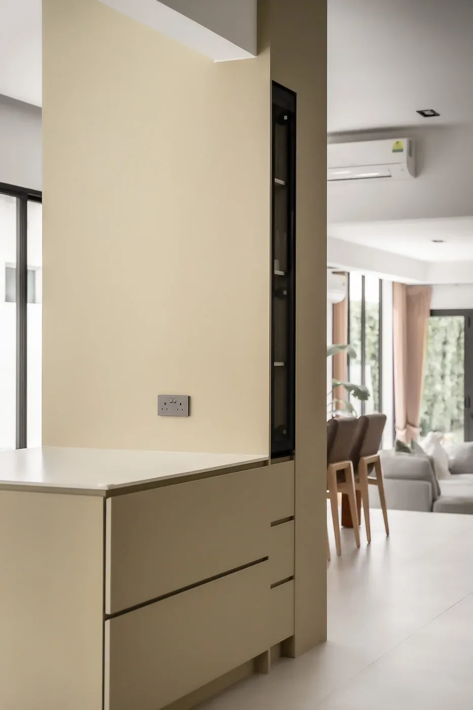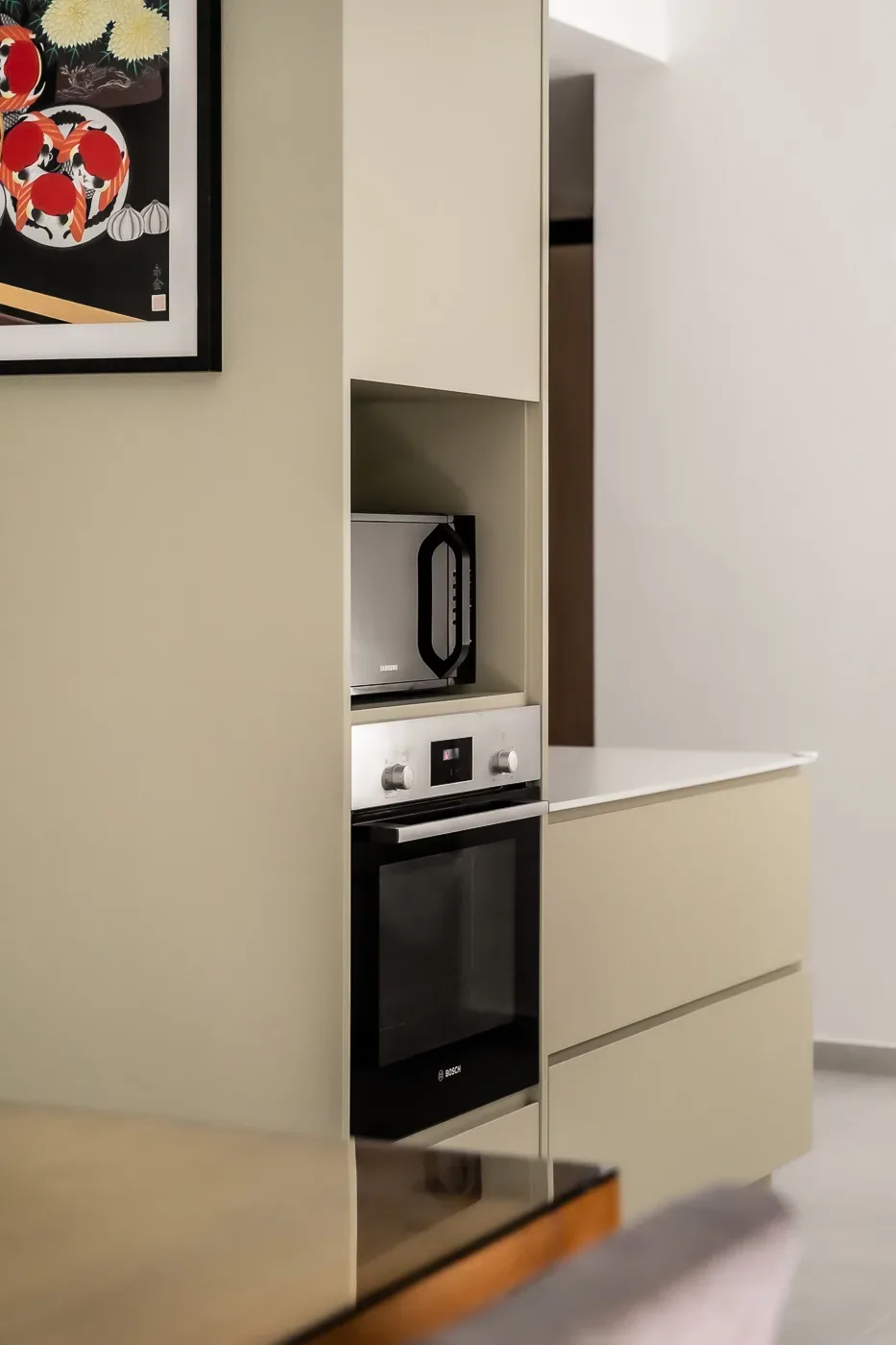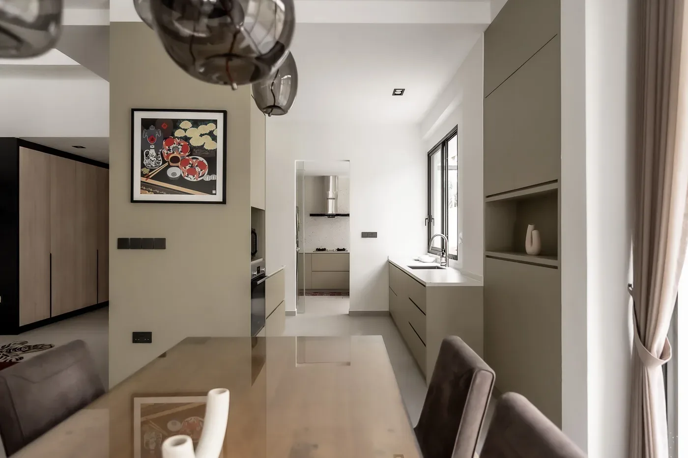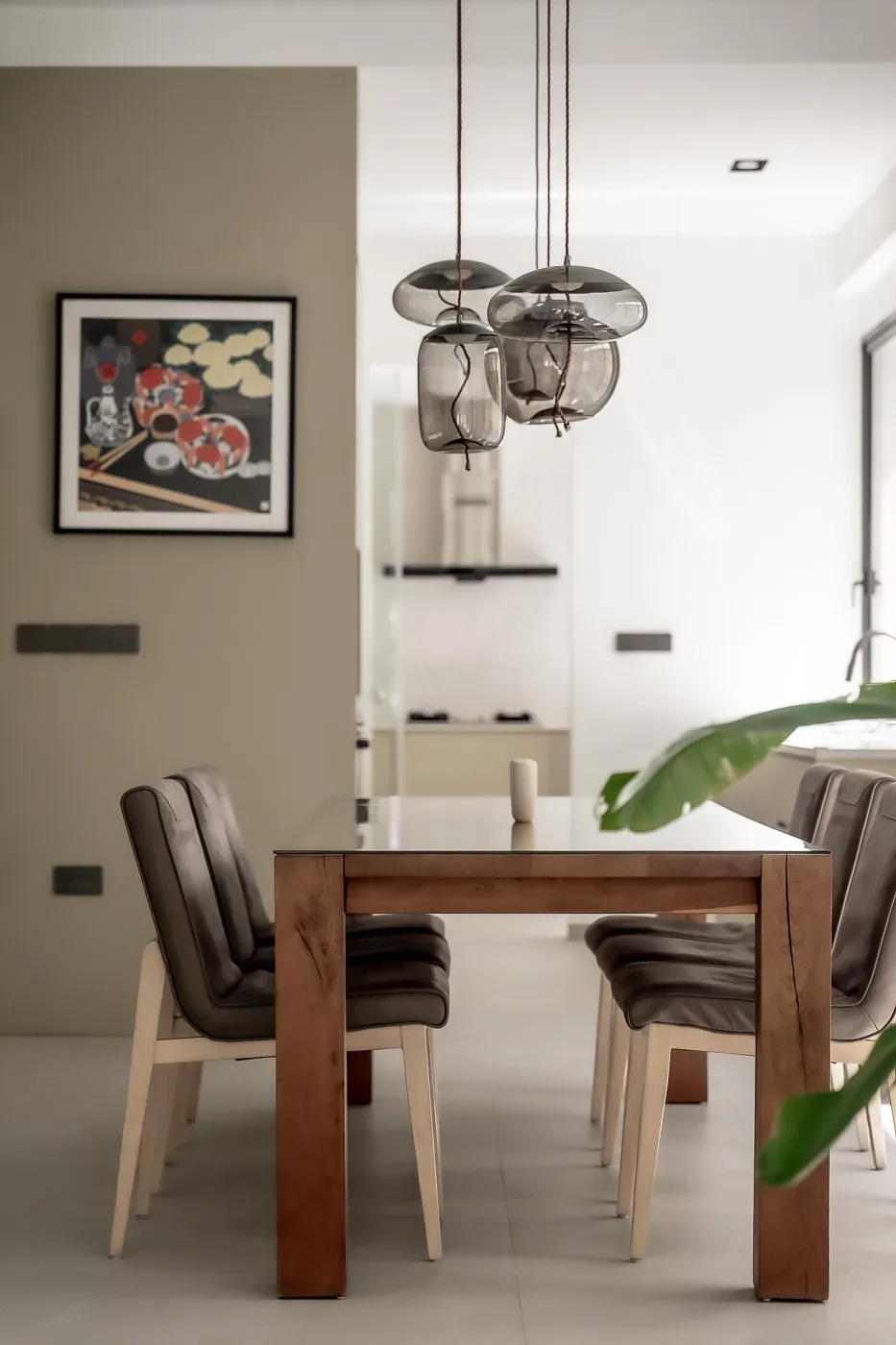 Unique features | A standout feature of this project is the integration of natural elements throughout the living space, which is central to the Urban Zen Minimalism concept. This is showcased by the use of organic materials, such as the reclaimed wood feature wall that elegantly houses the entertainment system, and the natural stone coffee table that anchors the living room. These elements bring an earthy, grounded feel to the modern environment. Furthermore, the strategic placement of greenery in areas of natural light fosters a connection with nature, enhancing the Zen-like atmosphere. The careful blending of minimalist furniture with functional design, such as the streamlined cabinetry and the sleek, modern kitchen, ensures that every element serves a purpose while contributing to the overall aesthetic. The emphasis on clean lines and uncluttered spaces not only provides visual relief but also facilitates ease of movement, reflecting a mindful approach to modern living. Overall, this design project offers a unique sanctuary that balances urban sophistication with the simplicity and introspection of Zen, ideal for those seeking a peaceful haven in the heart of the city. |