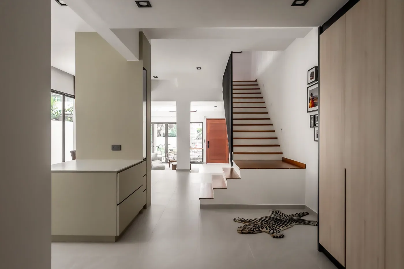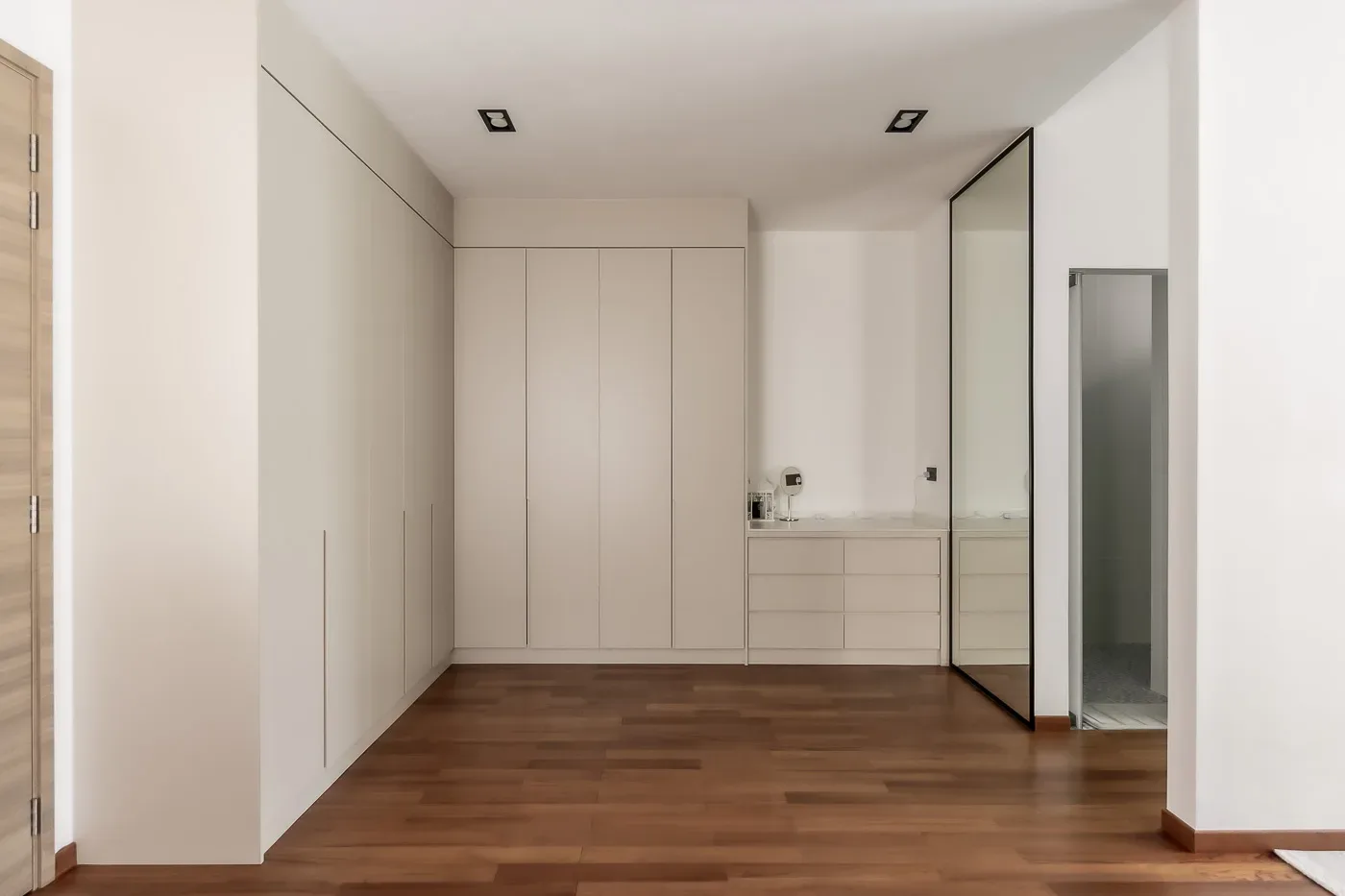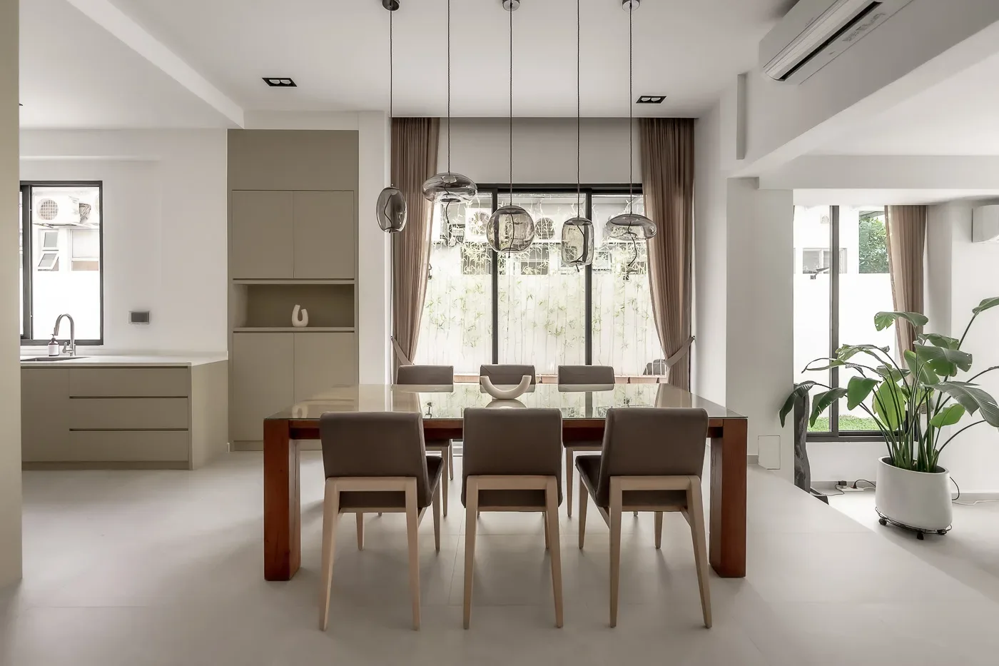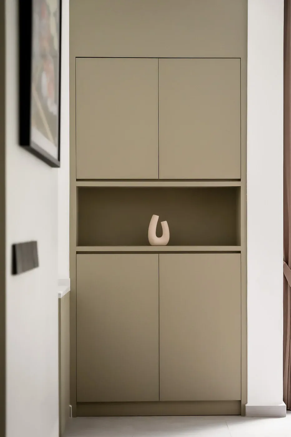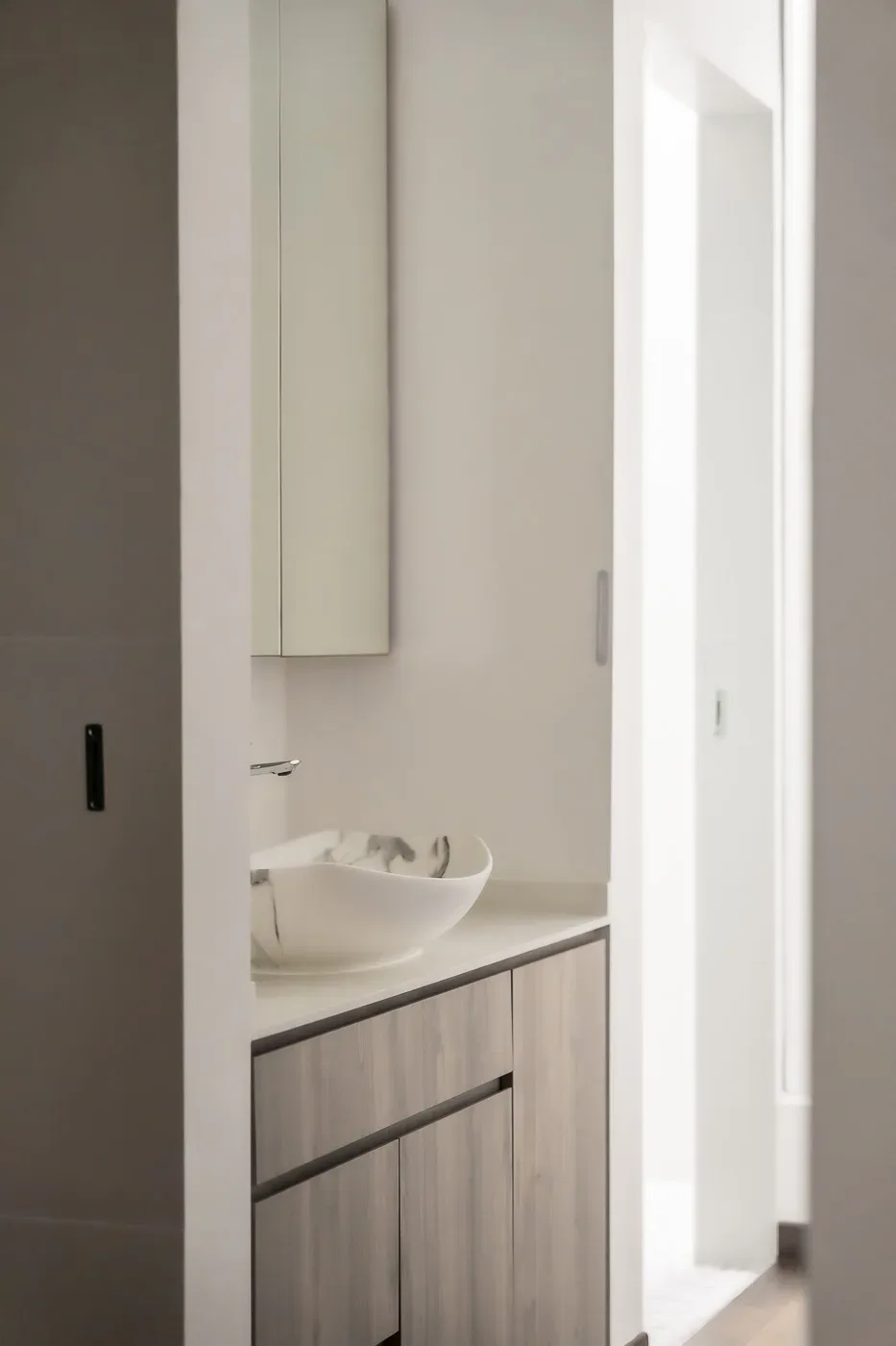 Unique features | A standout feature of this project is the integration of natural elements throughout the living space, which is central to the Urban Zen Minimalism concept. This is showcased by the use of organic materials, such as the reclaimed wood feature wall that elegantly houses the entertainment system, and the natural stone coffee table that anchors the living room. These elements bring an earthy, grounded feel to the modern environment. Furthermore, the strategic placement of greenery in areas of natural light fosters a connection with nature, enhancing the Zen-like atmosphere. The careful blending of minimalist furniture with functional design, such as the streamlined cabinetry and the sleek, modern kitchen, ensures that every element serves a purpose while contributing to the overall aesthetic. The emphasis on clean lines and uncluttered spaces not only provides visual relief but also facilitates ease of movement, reflecting a mindful approach to modern living. Overall, this design project offers a unique sanctuary that balances urban sophistication with the simplicity and introspection of Zen, ideal for those seeking a peaceful haven in the heart of the city. |