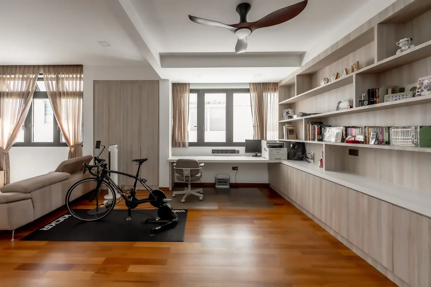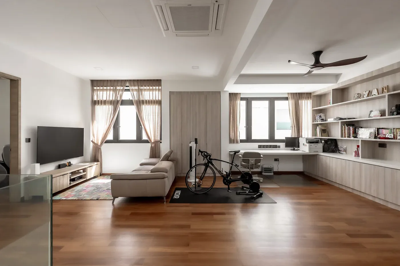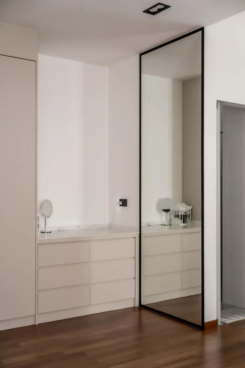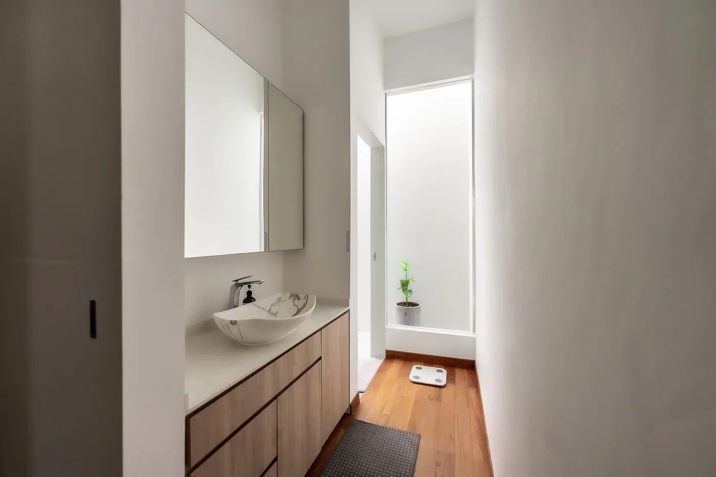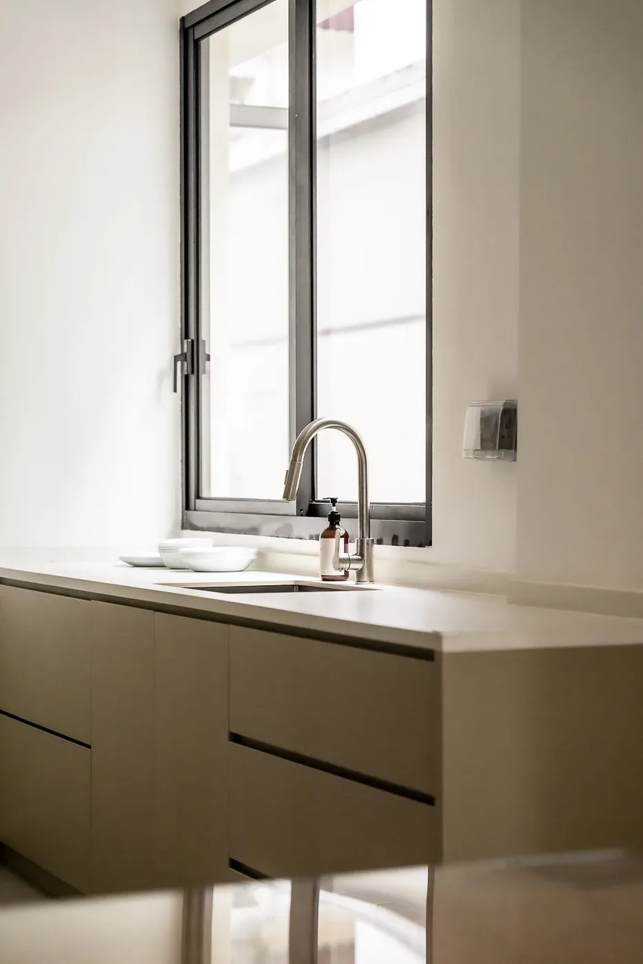 Unique features | A standout feature of this project is the integration of natural elements throughout the living space, which is central to the Urban Zen Minimalism concept. This is showcased by the use of organic materials, such as the reclaimed wood feature wall that elegantly houses the entertainment system, and the natural stone coffee table that anchors the living room. These elements bring an earthy, grounded feel to the modern environment. Furthermore, the strategic placement of greenery in areas of natural light fosters a connection with nature, enhancing the Zen-like atmosphere. The careful blending of minimalist furniture with functional design, such as the streamlined cabinetry and the sleek, modern kitchen, ensures that every element serves a purpose while contributing to the overall aesthetic. The emphasis on clean lines and uncluttered spaces not only provides visual relief but also facilitates ease of movement, reflecting a mindful approach to modern living. Overall, this design project offers a unique sanctuary that balances urban sophistication with the simplicity and introspection of Zen, ideal for those seeking a peaceful haven in the heart of the city. |