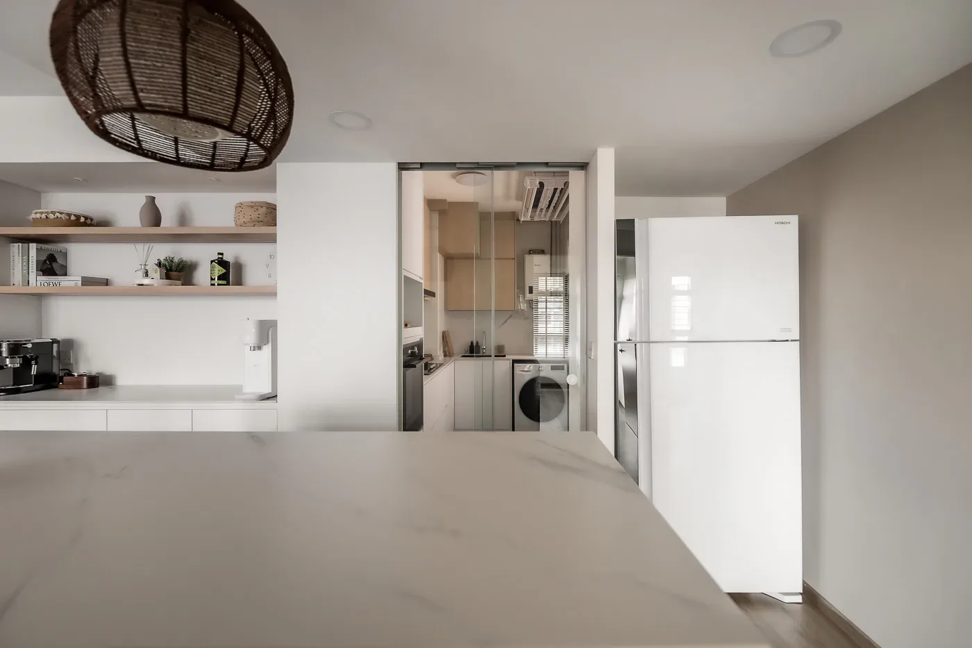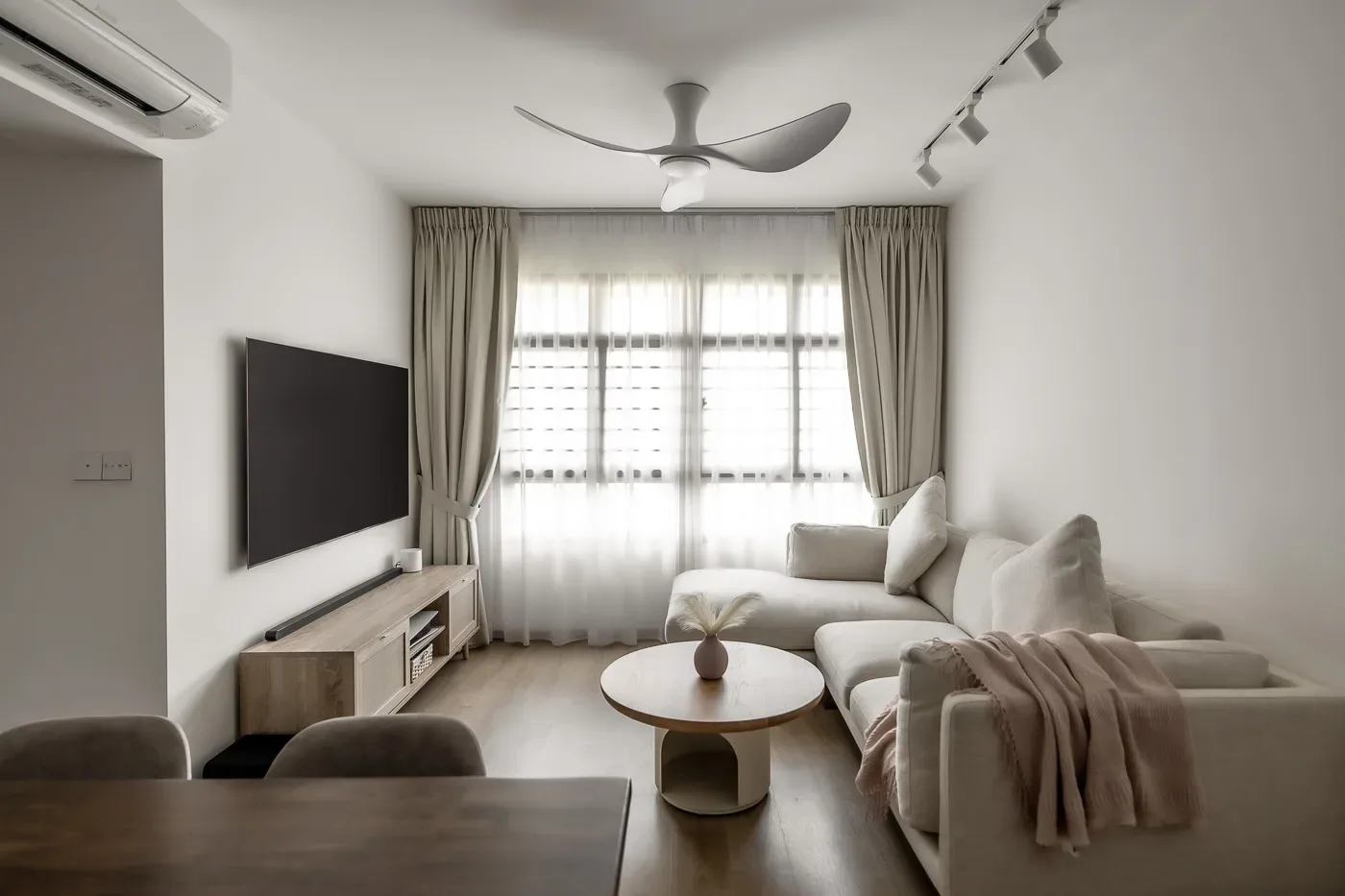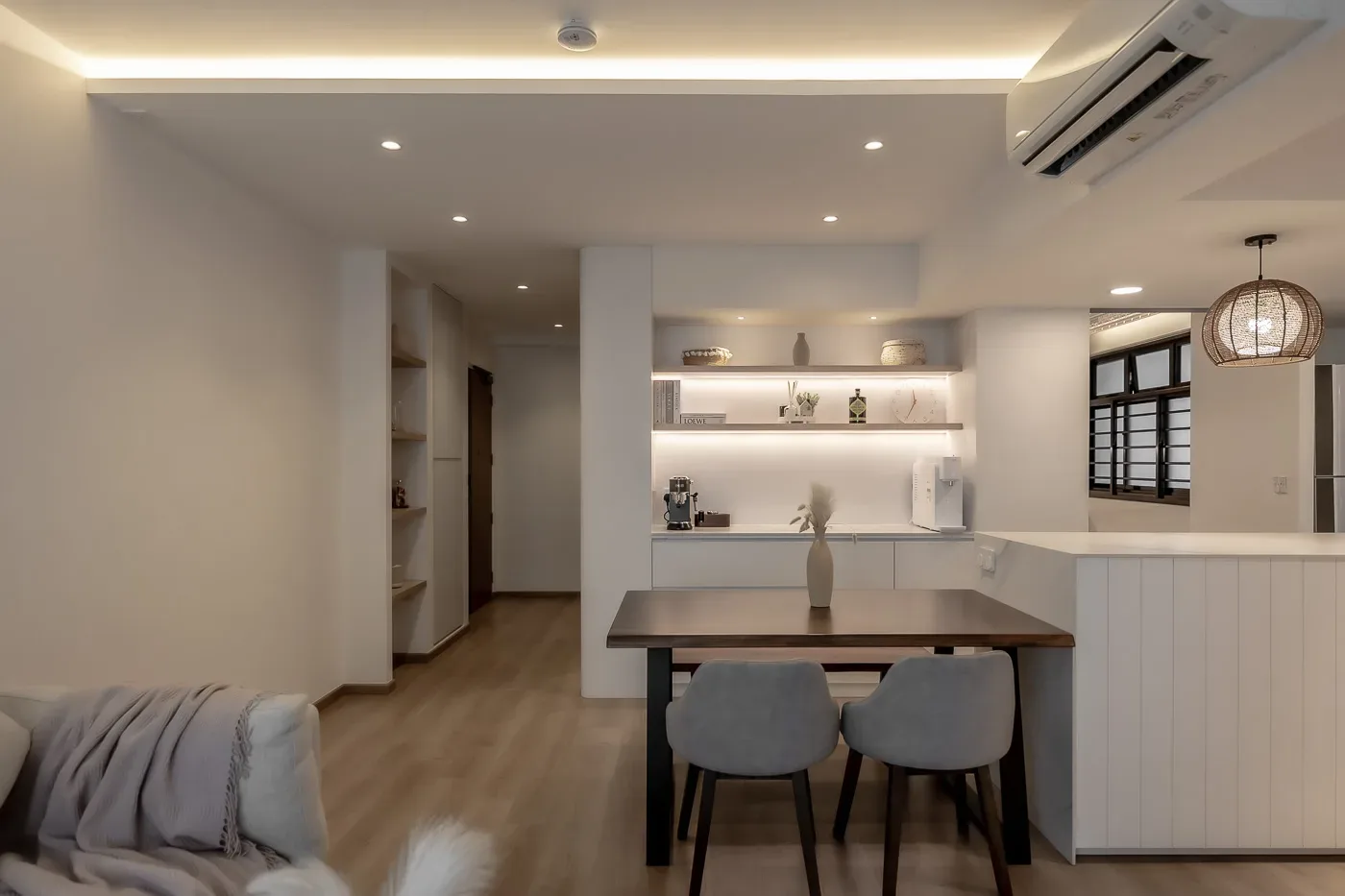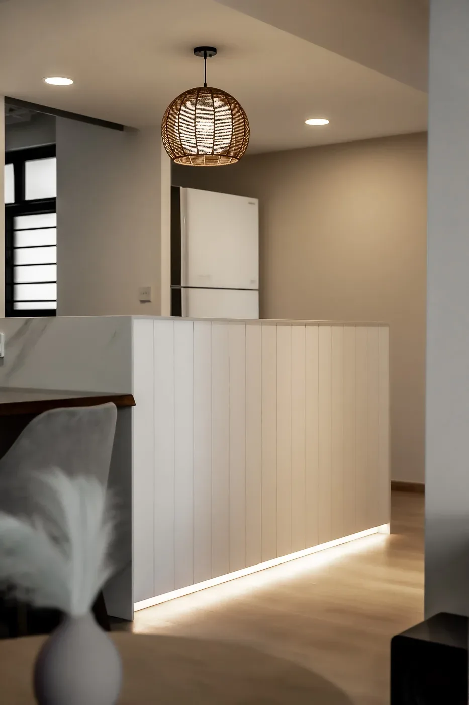 Design Concept | The interior of 215A Bidadari Park Drive is a testament to modern functionality, dressed in soothing neutrals and warm lighting. It combines sleek, clean lines with practical design elements, suited for family living. |