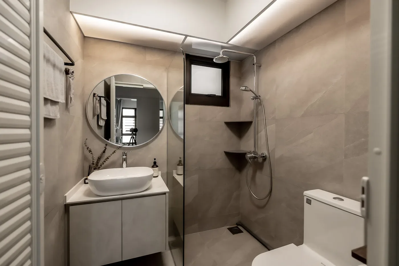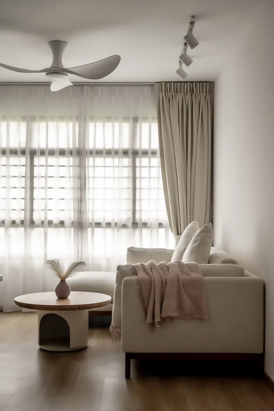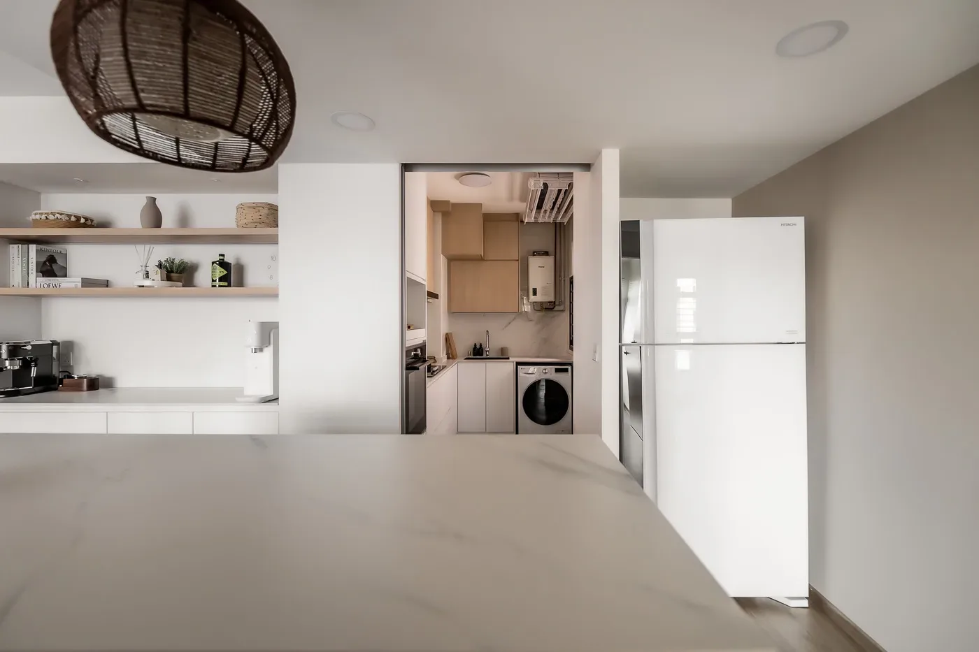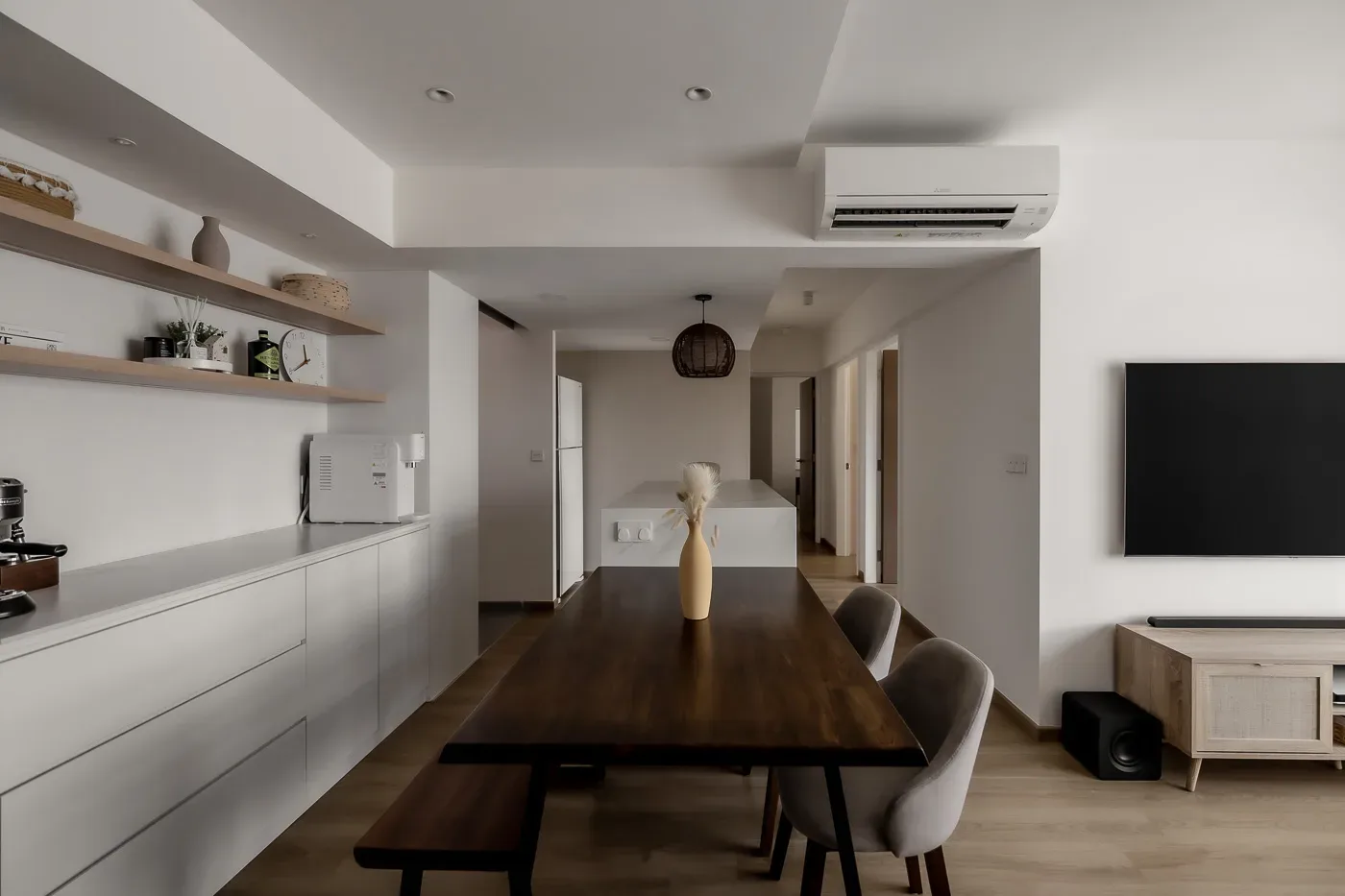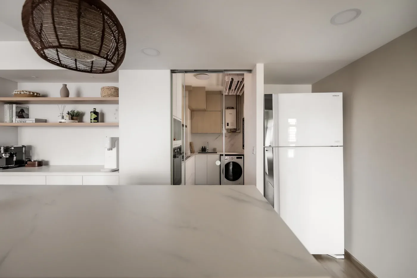 Design Concept | The interior of 215A Bidadari Park Drive is a testament to modern functionality, dressed in soothing neutrals and warm lighting. It combines sleek, clean lines with practical design elements, suited for family living. |