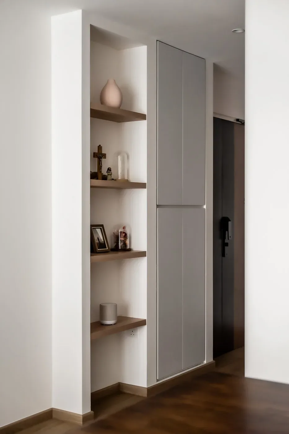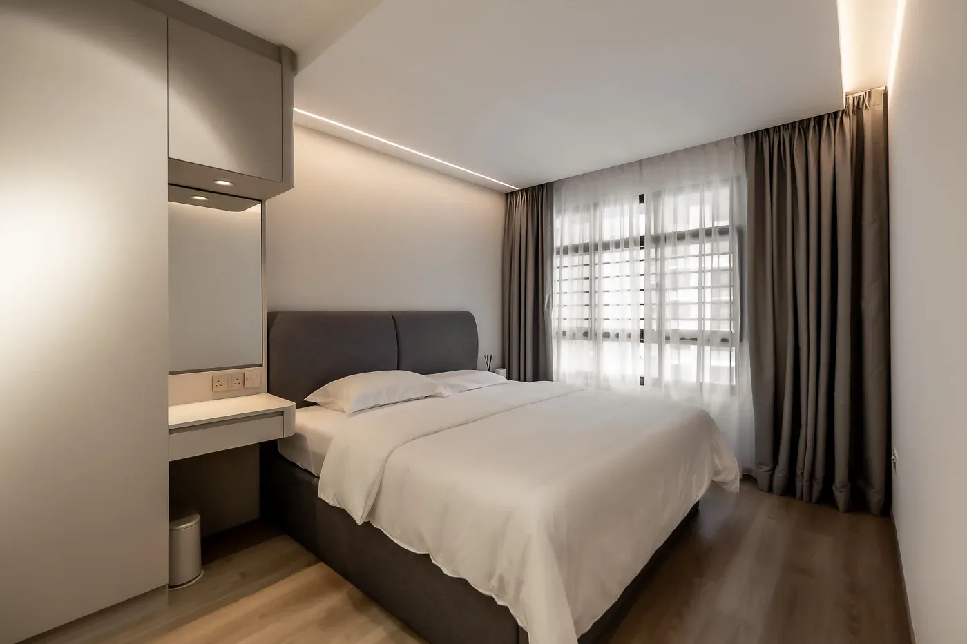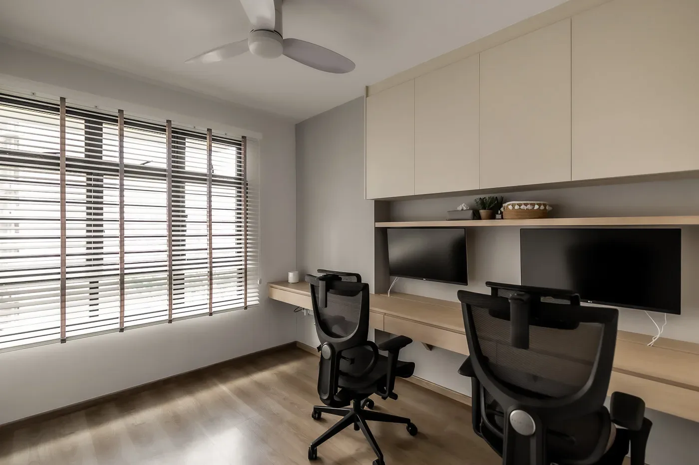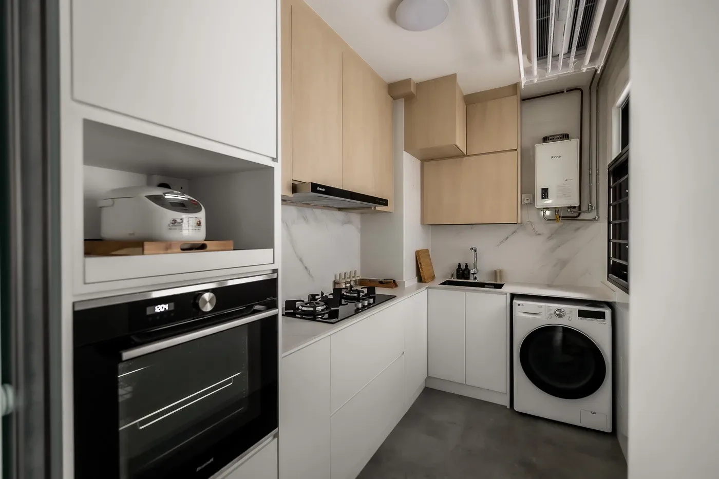 Design Concept | The interior of 215A Bidadari Park Drive is a testament to modern functionality, dressed in soothing neutrals and warm lighting. It combines sleek, clean lines with practical design elements, suited for family living. |