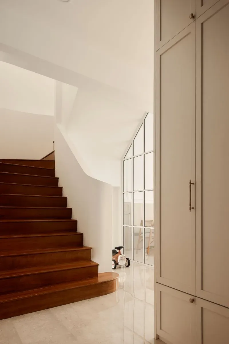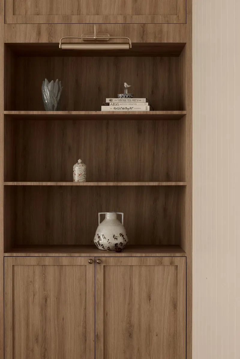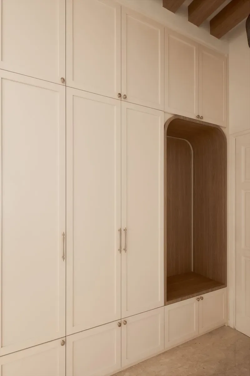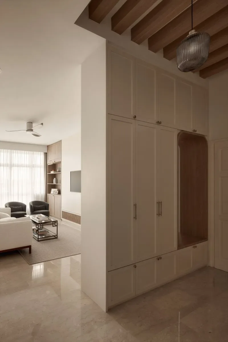 | Unique features | Integrated Living and Display Elements The living area is anchored by a custom feature wall combining open shelving, concealed storage, and textured paneling. This balanced composition creates a focal point while maintaining a sense of lightness and visual harmony. Modern Classic Spatial Language Wall moldings, soft panel details, and warm timber finishes introduce a contemporary interpretation of classic interior elements, adding depth without overwhelming the space. Architectural Storage Solutions Full-height cabinetry is carefully integrated across the residence, transforming storage into part of the architectural expression. Features such as the arched niche at the entry introduce subtle character while maintaining functional intent. Personalised Private Spaces Bedrooms and study areas adopt softer colour palettes and tailored carpentry solutions, creating environments that respond to individual needs while remaining consistent with the overall design language. Refined Kitchen Composition The kitchen balances practicality with elegance through the combination of marble surfaces, warm wood cabinetry, and patterned flooring. Integrated lighting enhances material textures while improving functionality for everyday use. Layered Lighting Experience Concealed lighting within cabinetry and workspaces adds warmth and depth, allowing the ambience of the home to shift naturally between day and evening. |