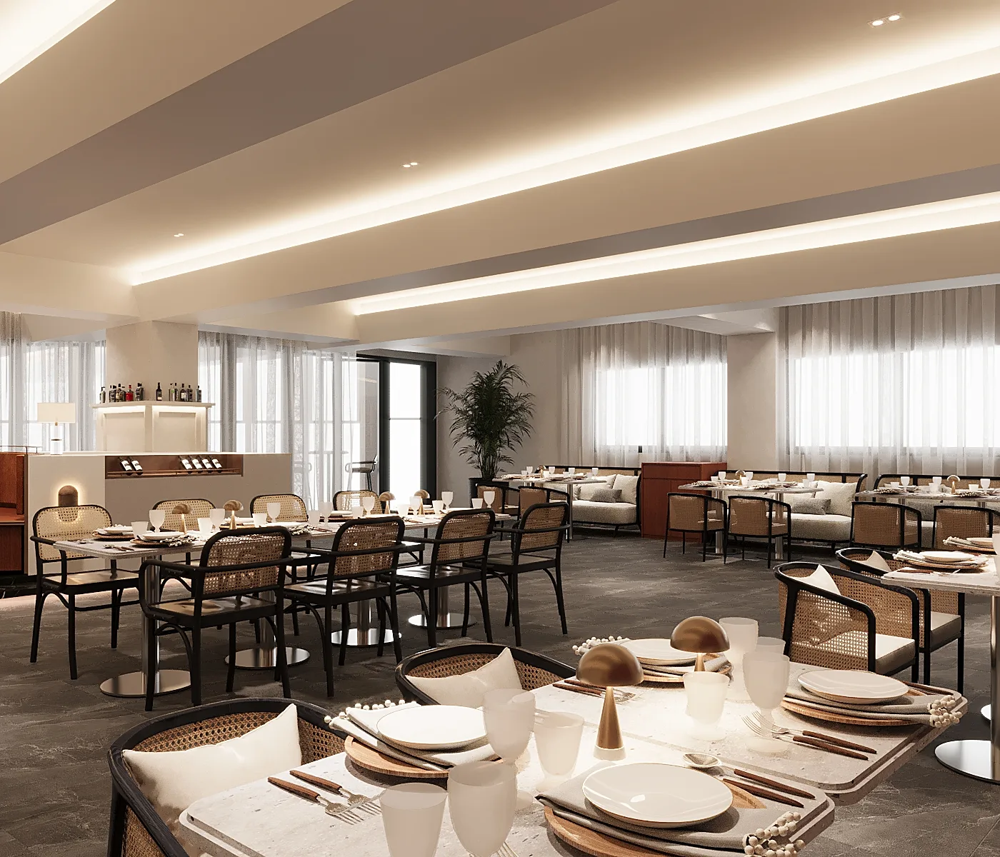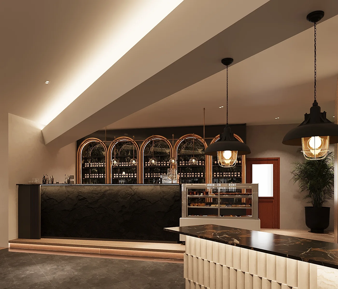Design Concept | The concept for Grey° is grounded in contrast and craft — merging textured tactility with refined geometries. Warm neutrals, deep timber tones, and brushed metallic accents compose a palette that feels luxurious yet grounded. Curved lines soften the architectural flow, guiding guests organically through zones that cater to different moods — from social gatherings to intimate conversations. Every zone is defined, yet visually fluid. Lighting plays a starring role: diffused coves, pendant highlights, and backlit displays add drama while maintaining comfort. Every design decision is a reflection of the brand’s elevated, yet welcoming spirit — confident in form, delicate in detail. |