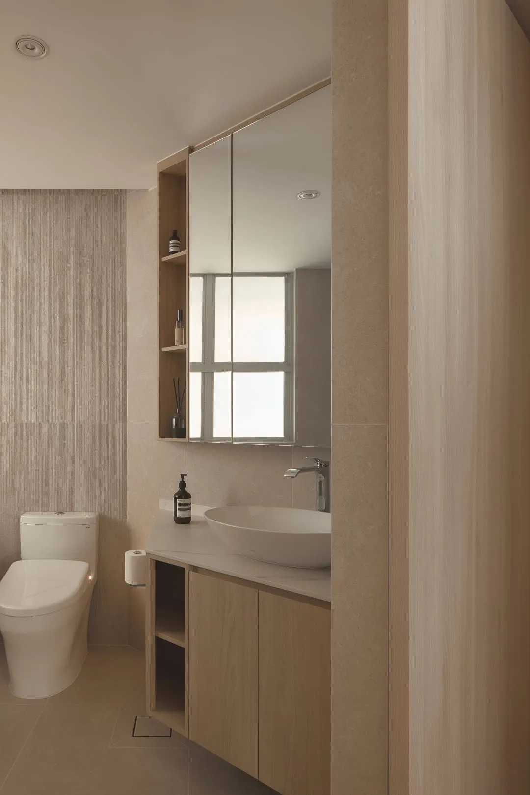 Consistent Vessel Basin + Oak Vanity Language